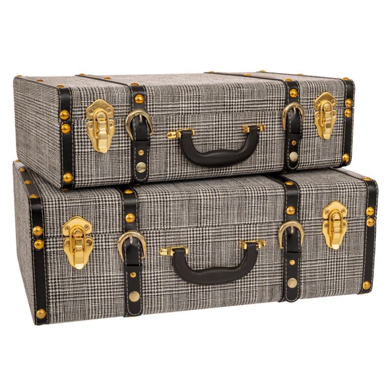 КОМПЛЕКТ 2 ЧЕРНО-БЕЛИ КУФАРА СЪС ЗЛАТИСТИ ДЕТАЙЛИ 50X17X34CM 46X14X28CM