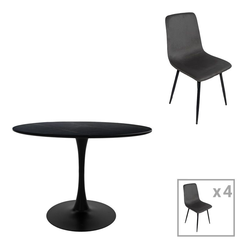 ТРАПЕЗНА МАСА BALOU-GRATO КОМПЛЕКТ ОТ 5 ЧАСТИ, ЧЕРНА, D100X73СМ