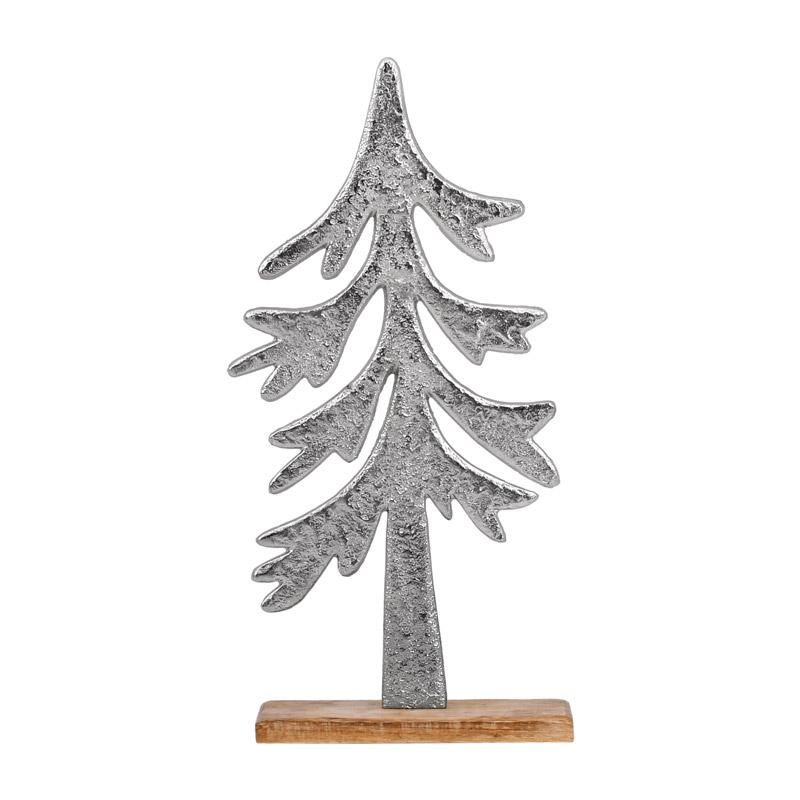 КОЛЕДНА ДЕКОРАТИВНА АЛУМИНИЕВА ЕЛХА FL1430 ДЪРВЕНА ОСНОВА СРЕБЪРИСТ ЦВЯТ 24x8x51см