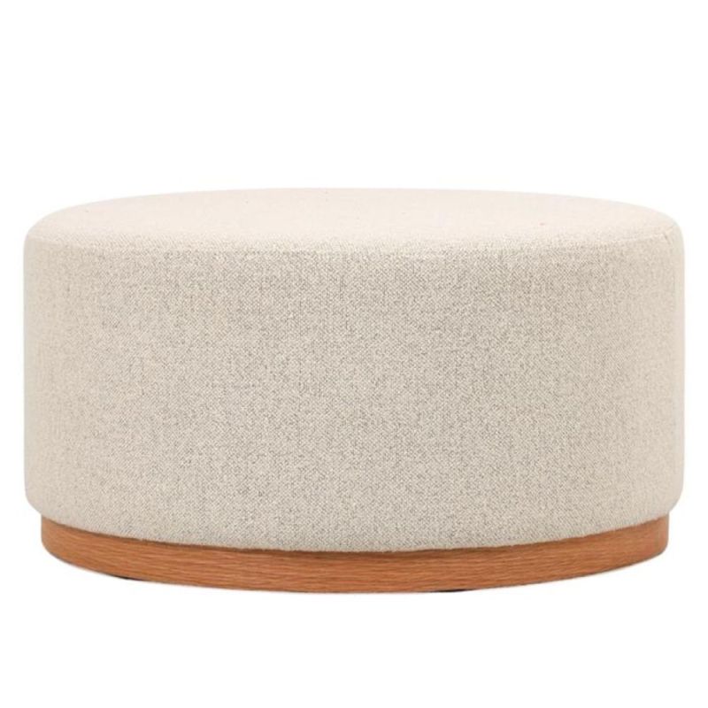 КРЪГЛА ТАБУРЕТКА С КРЕМАВА ВЪЗГЛАВНИЦА НА ДЪРВЕНА ОСНОВА 80X80X41СМ