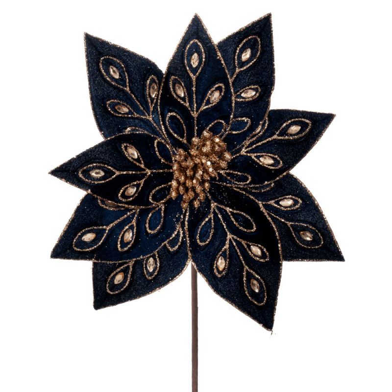 СИНЯ КАДИФЕНА КОЛЕДНА ЗВЕЗДА С ДИАМАНТИ СТЪБЛО 60 СМ
