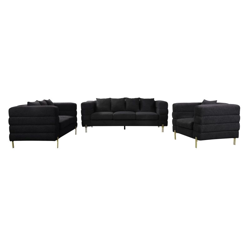 Ляв ъглов диван Нова Карина в сив цвят със светли възглавнички и табуретка с размери 278х218х85см