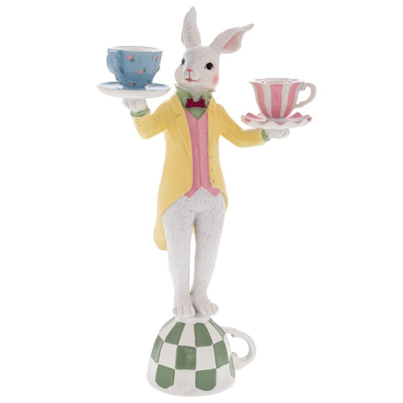 ВЕЛИКДЕНСКО БЯЛО-ЖЪЛТО ПОЛИРЕЗИНОВО ЗАЙЧЕ СЪС СВЕЩИ В ОСНОВА 23,5X12,8X41СМ