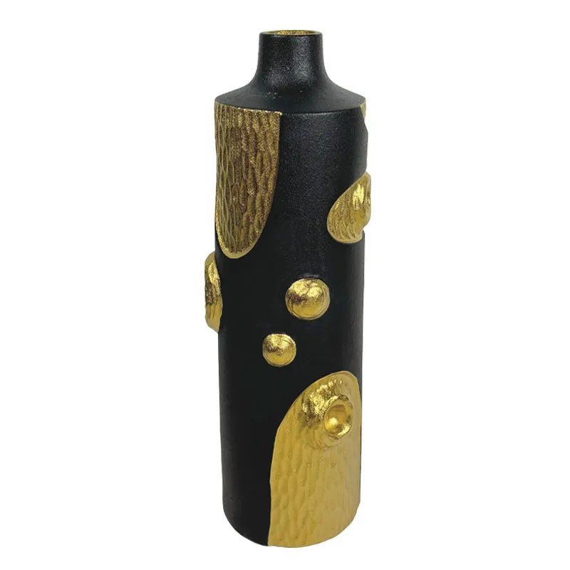 КЕРАМИЧНА ВАЗА, ЧЕРНА, ВИСОКА, СЪС ЗЛАТИСТИ ДОПЪЛНИТЕЛНИ ЧАСТИ, ГОЛЯМА - 44,5 см, 6 бр./КУТИЯ
