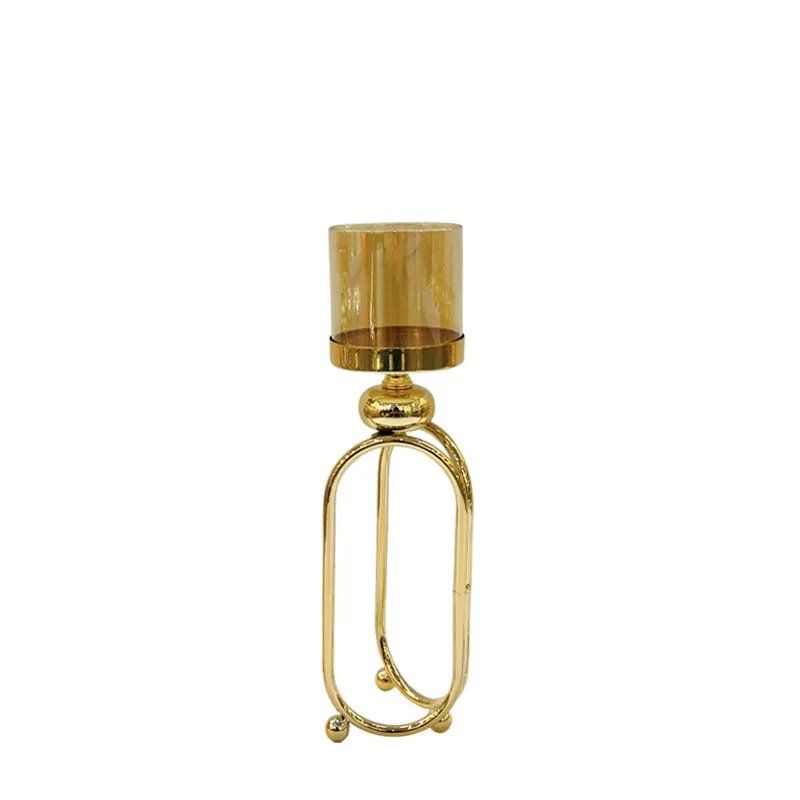 МЕТАЛЕН СВЕЩНИК, ЗЛАТЕН/МЕДЕН, ЕДИНИЧЕН, МОДЕРЕН, СЪС СТЪКЛО, СРЕДЕН - Φ11x31см 12/КУТИЯ