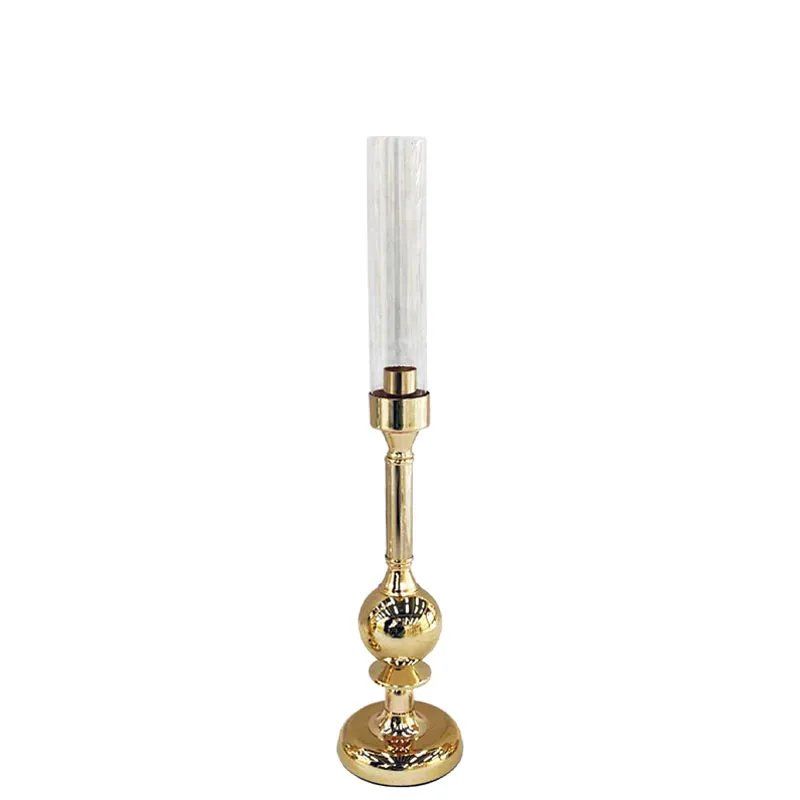 МЕТАЛЕН СВЕЩНИК, ЗЛАТИСТ/БЯЛ, КЛАСИЧЕСКИ С МАЛКО СТЪКЛО - Φ12x58см 12/КУТИЯ