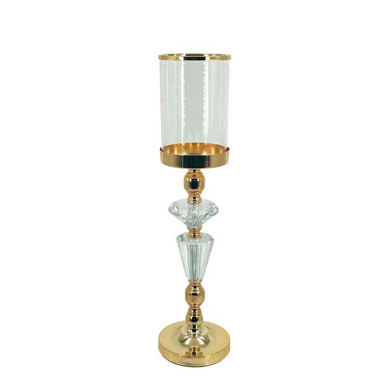 МЕТАЛЕН СВЕЩНИК, ЗЛАТИСТ/БЯЛ, КЛАСИЧЕСКИ, С КРИСТАЛИ И СТЪКЛО, СРЕДЕН - Φ12x46см, 12/КУТИЯ