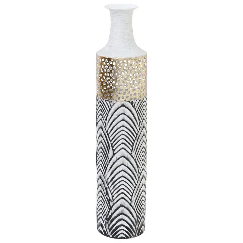 МЕТАЛНА ВАЗА ЗЛАТИСТ/ЧЕРЕН/БЯЛ ЛИНЕЕН ДИЗАЙН - φ12.4x63.5см 4/KIB