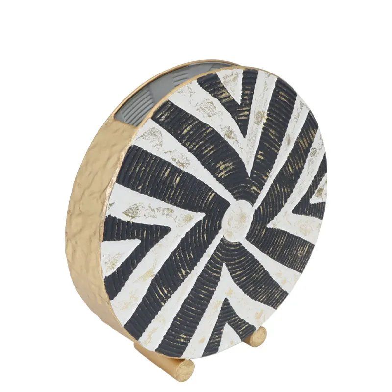 МЕТАЛНА ВАЗА ЗЛАТИСТО/ЧЕРНО/БЯЛО ЧЕРНО-БЕЛИ РАИРАНИ - 30.5x31.8x8.9см 4/KIB