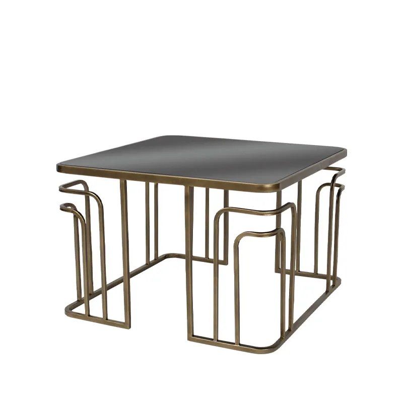 МЕТАЛНА МАСА ЗЛАТИСТА СЪС СТЪКЛО КВАДРАТНА АРТ ДЕКО - 60x60x40.5см 1/KIB