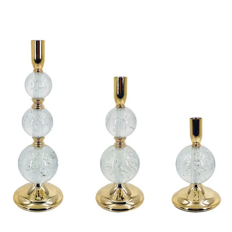 МЕТАЛНИ СВЕЩНИЦИ, КОМПЛЕКТ ЗЛАТИСТИ/БЕЛИ/3 СТЪКЛЕНИ ТОПКИ - РАЗМЕР: Φ10x19, М: Φ10x26, Д: Φ10x33см 12/КУТИЯ