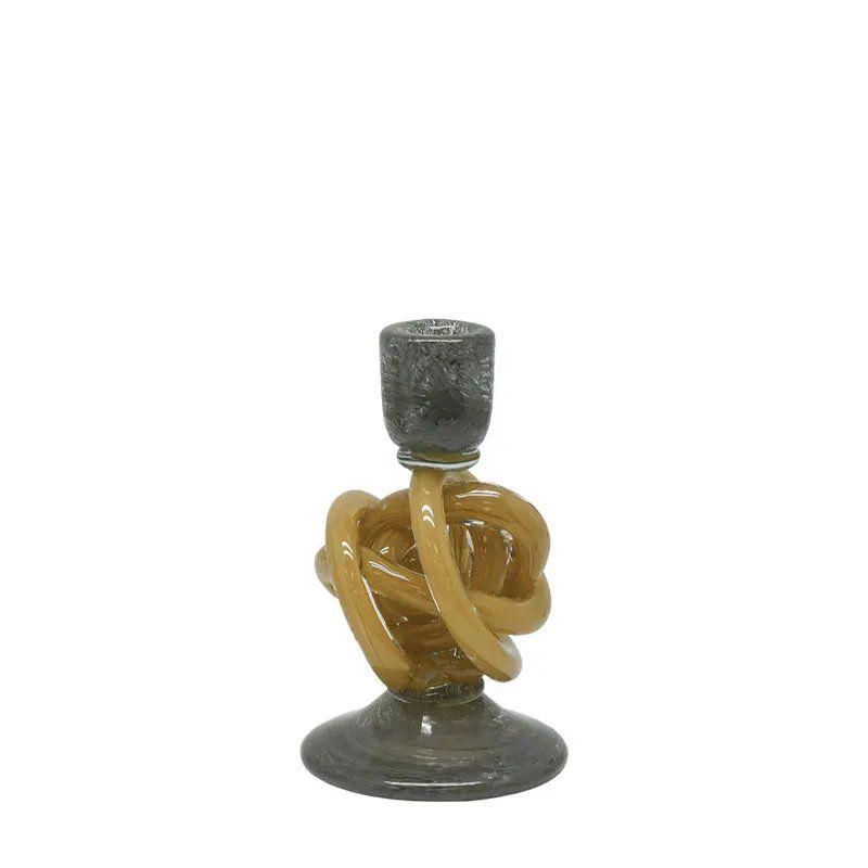 СТЪКЛЕН СВЕЩНИК СИВА/МЕДЕНА С КЪС ВЪЗЕЛ - Φ12x20см 12/КУТИЯ