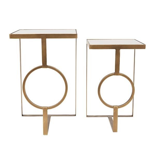 Метална помощна маса S/2 със стъкло, златиста, 35x35x56cm / 30x30x50cm