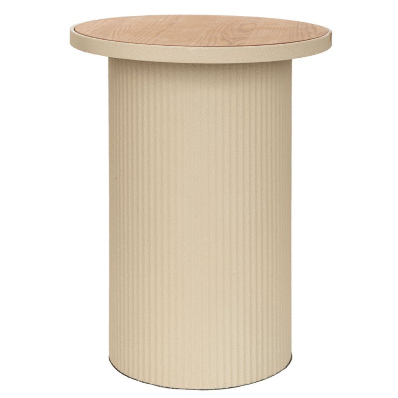 МЕТАЛНА ПОМОЩНА МАСА В КРЕМАВ ЦВЯТ С ДЪРВЕНА ПОВЪРХНОСТ 36X36X45,5 СМ